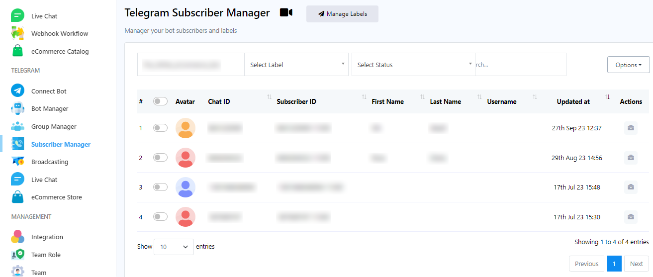To effectively manage labels, please follow these steps within the Telegram Subscriber Manager: